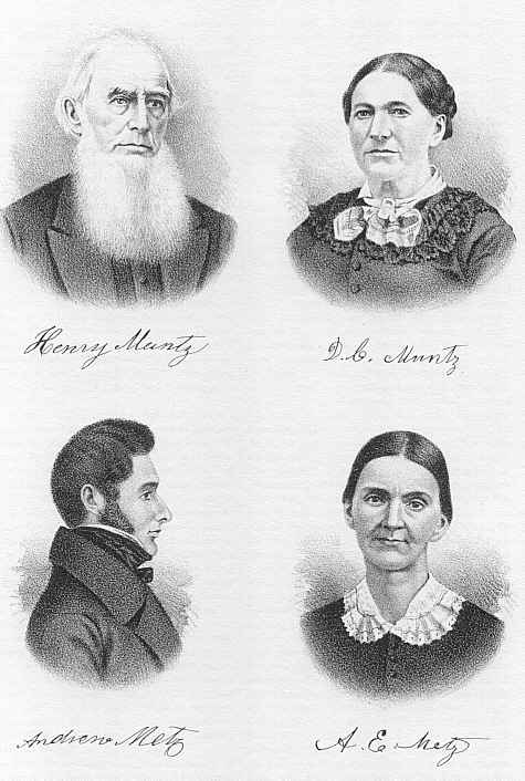 May 31, 1853, he was married to Mrs. Catharine DIEFFENBACHER, widow of Rev. Jacob F., who was once pastor of the Reformed Church in Harmony, where he died in 1842. Her maiden name was HOTTEL, and she was born in Woodstock, Va., June 6, 1815. By her first husband she bore four sons--Dioduras S., Eusebius H., Cyrus R. and Jacob F., the first three being ministers of the Gospel. Mr. and Mrs. MUNTZ are the parents of one daughter named Zelie. Mrs. MUNTZ is an estimable lady, and has well fulfilled her mission in life.