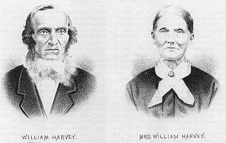 Patrick HARVEY was a man of medium size, but of a strong constitution, capable of a great deal of hard work. It was his custom to keep two teams of horses, and while plowing, to have his meals brought to him in the field, and changing the horses for fresh ones at meal time, he himself, kept at work from early morning until night. He was a true type of earnest, courageous pioneer; industrious and frugal by nature, and honest, frank and sincere in his intercourse with men.