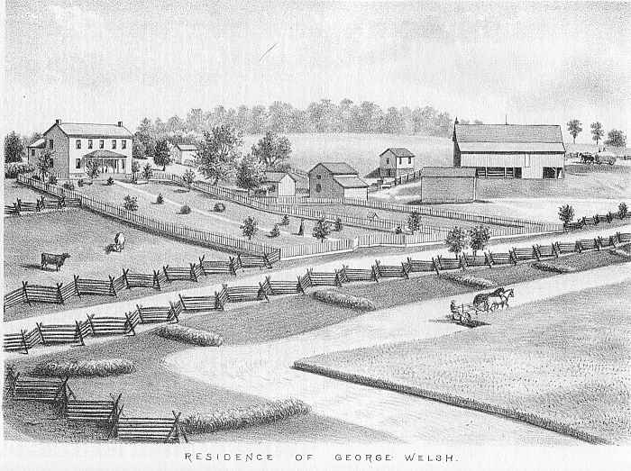 John WELSH, a native of Ireland, settled near Jefferson Center in 1821. He had a family of seven children, of whom three daughters are living. His son Thomas succeeded him in the possession of the farm, and died in 1858. The place is still in the possession of his family, the farm now being managed by his sons, Loyal Y. and William J. WELSH. At the time the WELSH farm was settled, there was no farm south of it on the Bull Creek road for about five miles.