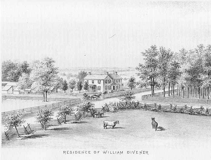 William the fourth son of George H. DIVENER, was born August 27, 1843. In 1869, he married Miss Anna BAKER, of Millerstown, Butler Co., Penn. Of eight children born to them four died in infancy. Those living are Caroline E., Gertrude S., Charles F. and Lilly L. Mr. DIVENER has been a resident of Jefferson Township for five years, and besides his elegant residence at Hannahstown, he owns a beautiful farm near the same place. He is a member of the German Lutheran Church, and politically is a Democrat of pronounced views.