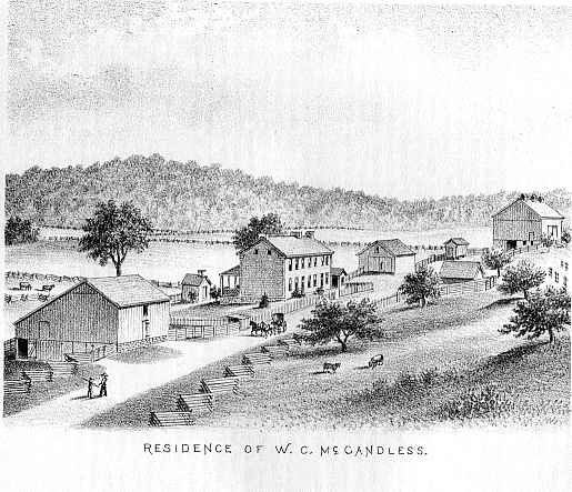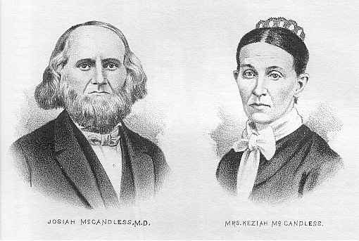 William, the fourth son of John MCCANDLESS, was born in Ireland in 1777. He died in 1850. In 1801, he married Nancy FISH. She was born in 1783 and died in 1871. To them were born eleven children, five of whom are dead. Dr. Josiah MCCANDLESS, one of the sons, died in 1875. (See medical chapter.) Of the survivors, Nathan F., born in 1803, is one of the oldest residents. He resides upon a farm which was settled very early, and christened "The Garden." Jane (THOMPSON), Brady Township; Nancy is Mrs. J.M. MCCANDLESS; Anderson and William C. reside in this township; Jemima (RODGERS) in Lawrence County.