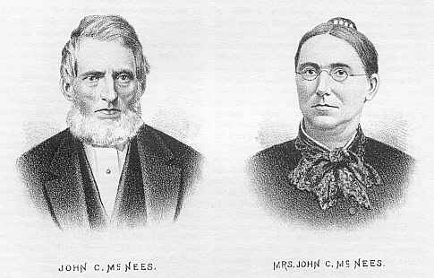 November 6, 1855, Mr. MCNEES married Susannah ARMSTRONG, who is still living, and the mother of six children -- Elizabeth E., Robert W., Addison A., Rose E., Fannie V. and Mary F. All are living and at home, except Robert Walker, who died October 4, 1873, aged 15 years. He was a lad of bright promise, and greatly beloved.