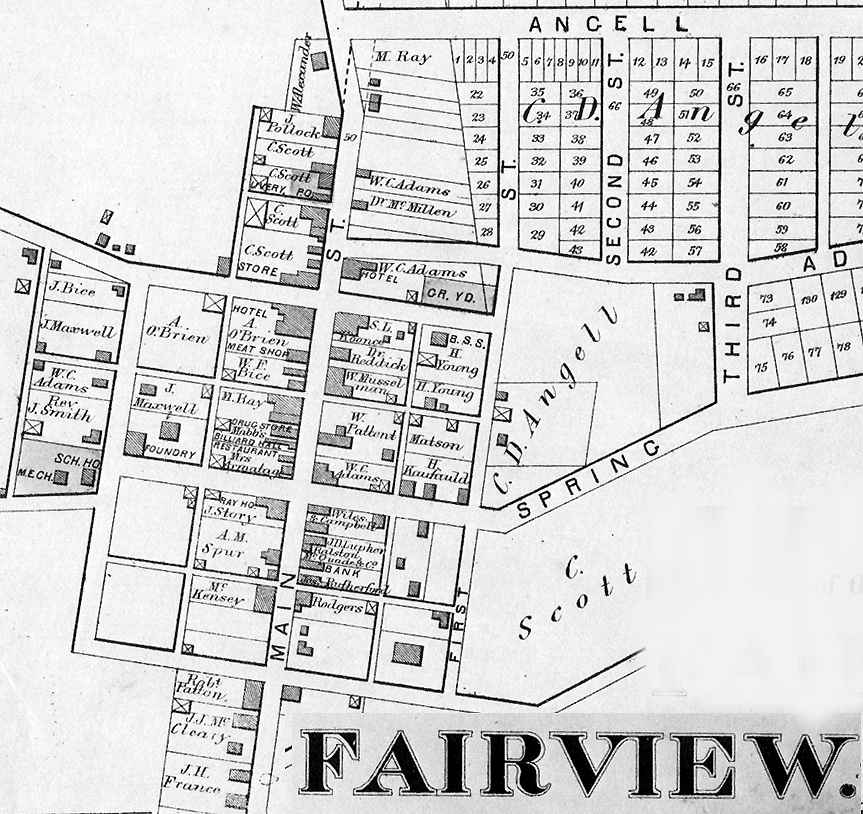 THE village of Fairview was founded seventy-seven years after the French discovered oil on Oil Creek, and almost forty-two years before the American operators knew anything of the "Fannie Jane," or her extraordinary contemporaries on Bear creek. In 1826, it is true, James McELWEE opened a little stock of whisky and groceries at the point now called Fairview, but not until 1830 did Thomas McCLEARY and William HAWK, who died in 1848, survey the site into town lots. Peter BEIGHLEY, the first postmaster, Robert PATTON, the second post-master, James ADAMS, James McELWAINE, the Star Route contractor, William McCAFFERTY, John EMERICK, John SMITH, George WARD and James MOORE were the first lot buyers. William McCAFFERTY established a cabinet shop in 1830 or 1831, and also a tavern. McELWEE appears to have left the place and Robert PATTON to have succeeded him as merchant. George WARD was mail carrier and James MOORE was the village blacksmith. John ADAMS opened a stock of goods in John SMITH's house in 1838-39. This house, with twelve others, then constituted the town. A log house occupied the site of the present ADAMS House, in which James ADAMS opened a store. Within the ensuing ten years some progress was made; George EMERICK entered into friendly competition with McCAFFERTY in the tavern business; Shields ADAMS competed with Robert PATTON and Maj. James ADAMS for general trade; James SCOTT opened a harness shop, and one or more tradesman found employment there. The Fairview foundry was established in 1844 by Col. James A. GIBSON and M. S. ADAMS. The latter was also in the mercantile business until 1858, when he sold to ARNOLD & CRAWFORD. In 1858 ARNOLD & CRAWFORD became owners of the foundry, which was carried on from the fall of that year until 1860 by J. J. MAXWELL, lessee. In the latter year he purchased the property, and continued to operate it until 1872.