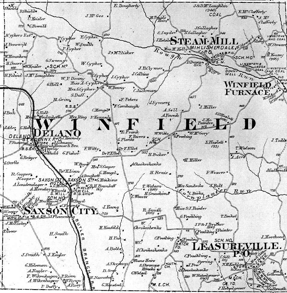 Township and borough maps of Butler County Pennsylvania from the 1874 Atlas of the County of Butler, and the State of Pennsylvania, by G.M. Hopkins & Co., Philadelphia.
