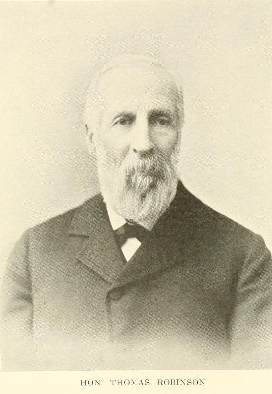 fellow citizens, was Thomas Robinson, who, for seventy-one years was a resident of this section. He was born July 4, 1825, in County Armagh, Ireland, and was a son of Thomas and Arabella (Riley) Robinson.